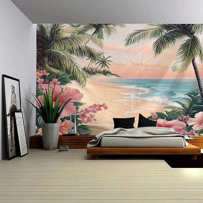 A Seaside Plant Landscape Hanging Tapestry Mural Art Large Tapestry Mural Decoration Photo Background Carpet Curtain Home Bedroom Living Room Decoration 5