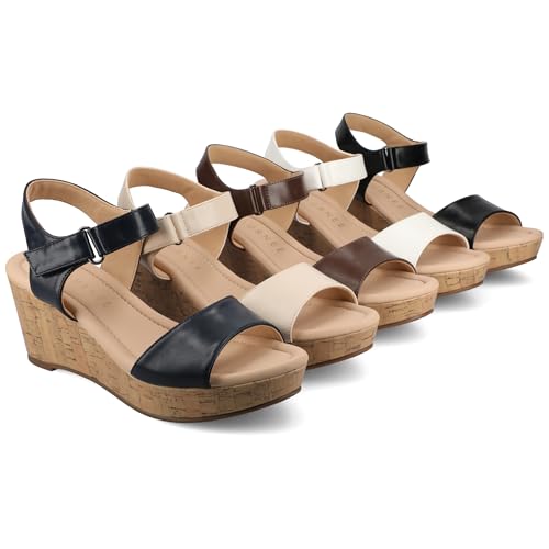 • RANAE WEDGE SANDAL: The cork wedge sandal from Journee is designed with a stylish cork wedge heel that adds height while ensuring comfort. Its 3/4 ankle strap offers a secure fit, and the open round toe gives it a fresh, breezy look. This sandal is ideal for pairing with summer outfits, providing a blend of elegance and ease for any casual occasion.