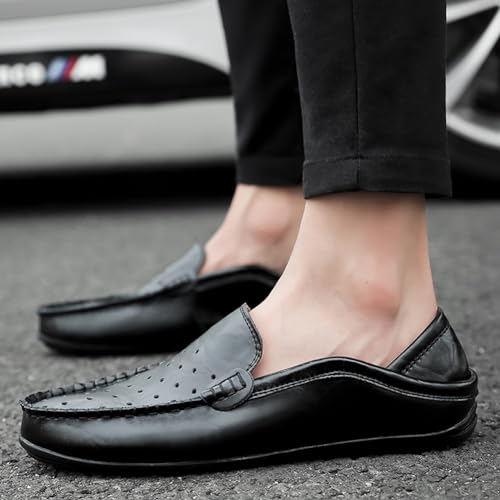Men's Lightweight Casual Genuine Leather Slip On Soft Driving Walking Shoes Penny Loafer Flats Shoes 6