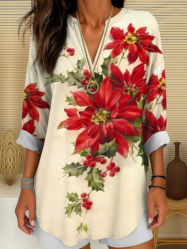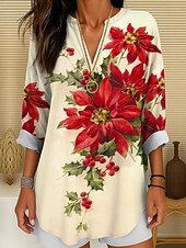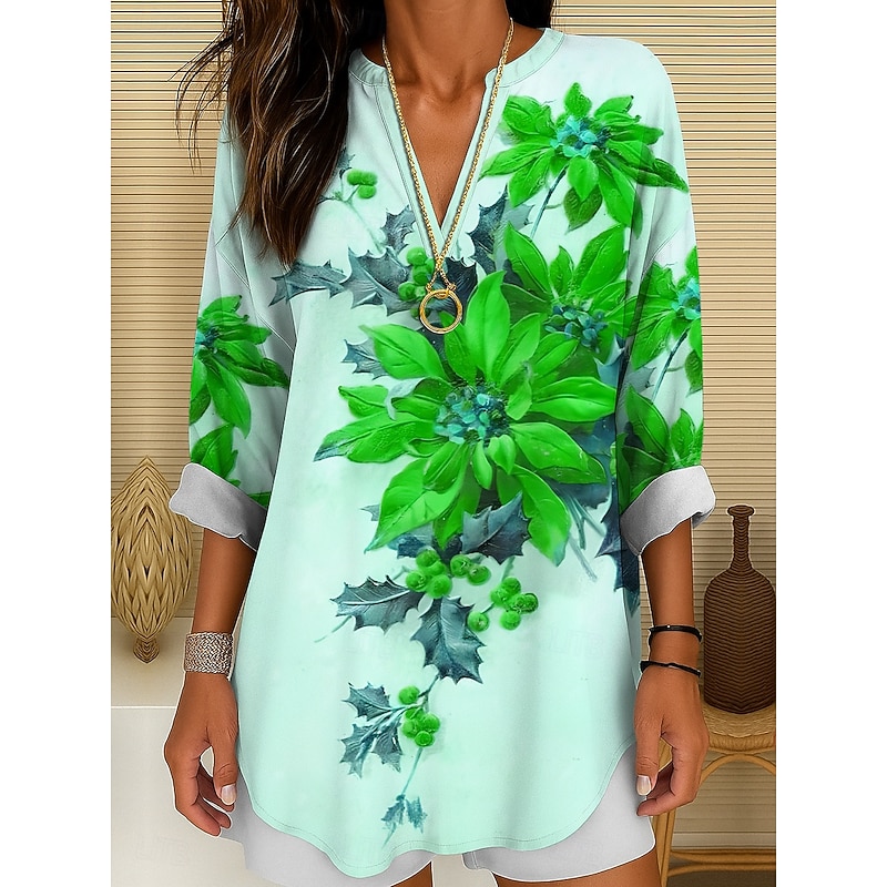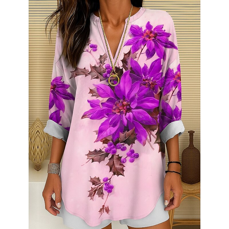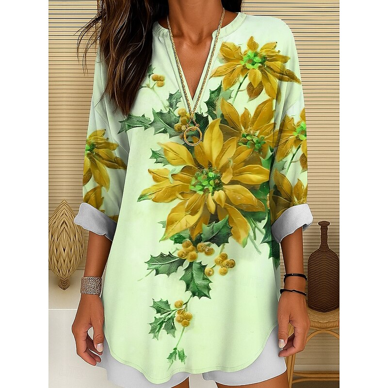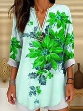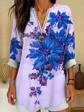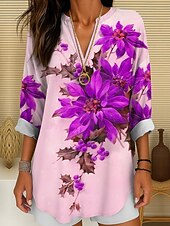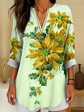 More information about Women's Blouse Tunic V Neck Long Sleeve Boho Casual Floral Graphic Vintage Tropical Regular Tops Daily Wear Print Yellow Red Blue Purple Green Winter