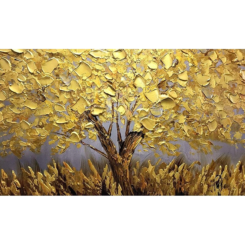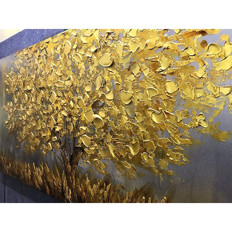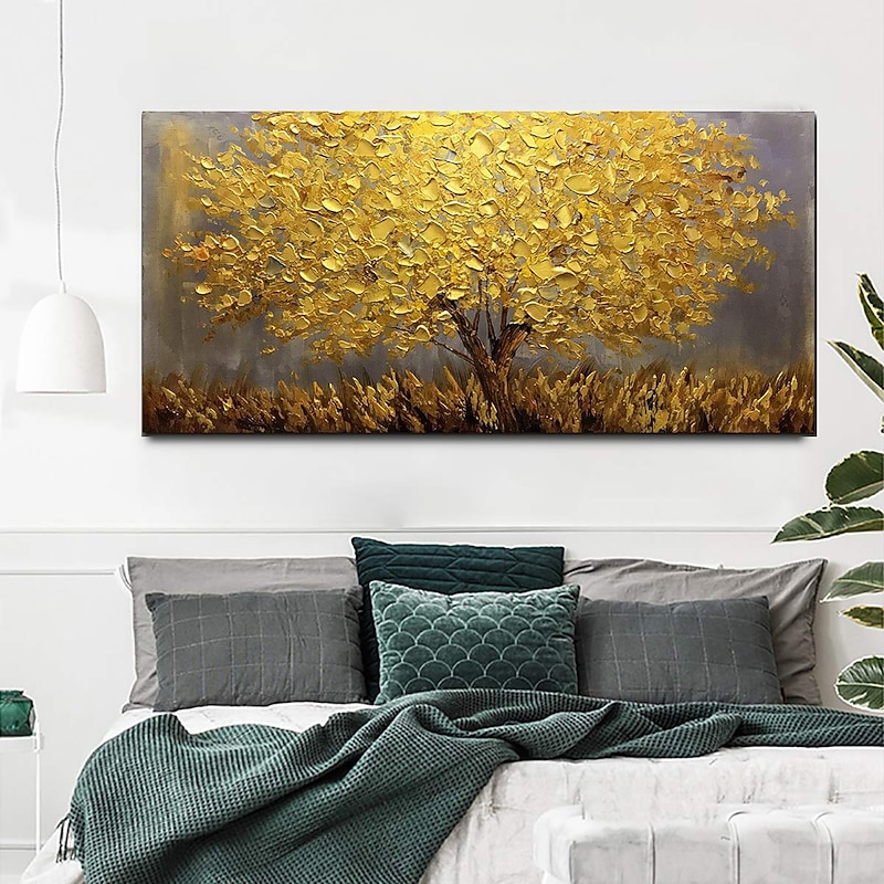 Oil Painting 100% Handmade Hand Painted Wall Art On Canvas Yellow Tree Plant Horizontal Abstract Modern Home Decoration Decor Rolled Canvas With Stretched Frame 8