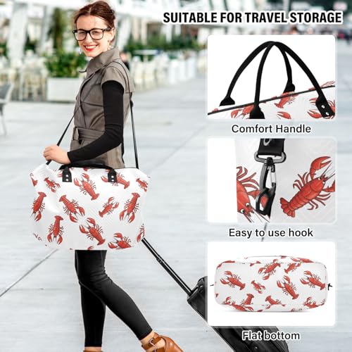 HOT ! Cartoon Red Lobster Travel Duffel Bag for Men Women with Makeup Bag Weekend Overnight Carry On Bags for Hospital Travel Gym