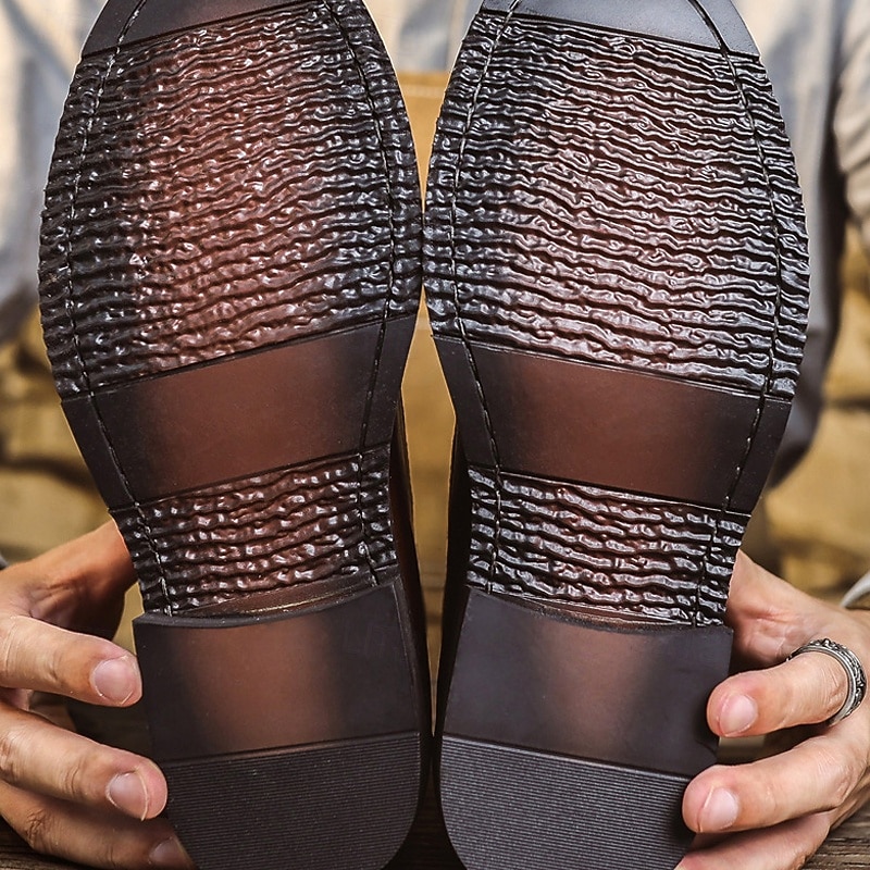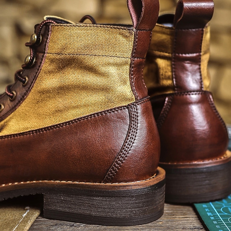 Men's Brown and Tan Lace-Up Work Boots with Contrast Panels, Rugged Mid-Calf Design for Gentlemen, Suitable for Outdoor Work, Hiking and Casual Outfits 4
