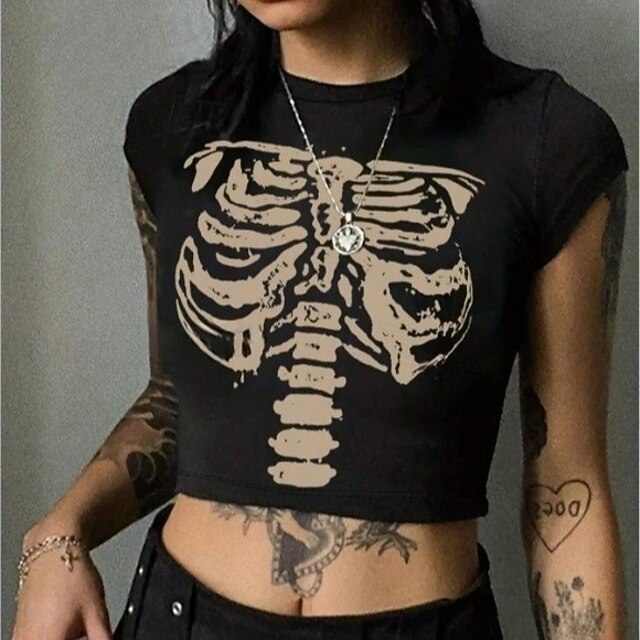 HOT ! Punk & Gothic Crop Top Tee Goth Girl Skeleton Fancy Dress Women's Halloween Carnival Casual Daily Adults' T-shirt Summer