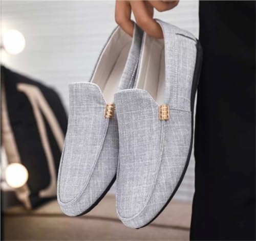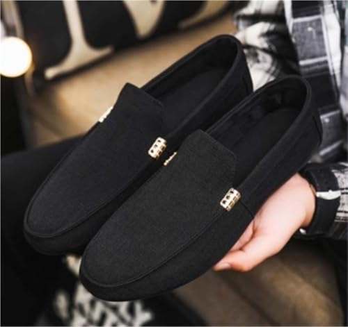 Mens Loafers Round Toe Solid Color Cloth Shoes Anti-Slip Flat Heel Lightweight Casual Slip-ons 7