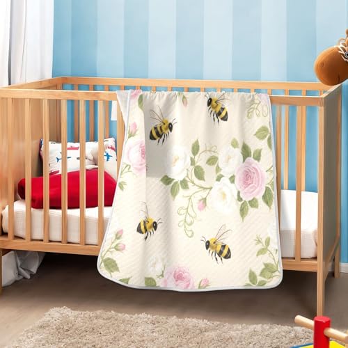 Custom Watercolor Rose Flower Bees Pink Cream Kids Blanket smooth Custom-Made Animal Name Blanket for Girls or Boys 30x40in cobijas para personalizadas
