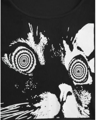 CEINOM E-girl Gothic Grunge Crop Tops Vintage Women Cat Graphics Black Tops Retro lovely kitten Mini Vest Punk Emo Clothes