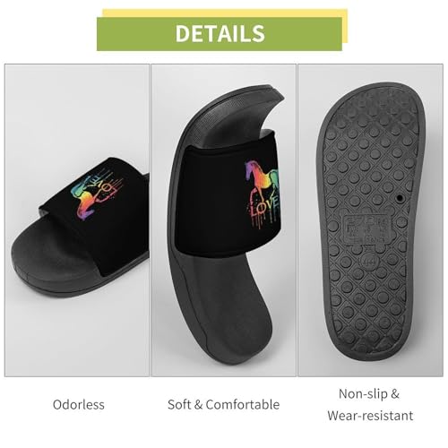 HOT ! Horse Lover House Slippers for Women Men Lightweight Open-toe Slide Shoes for Bathroom Swimming Beach