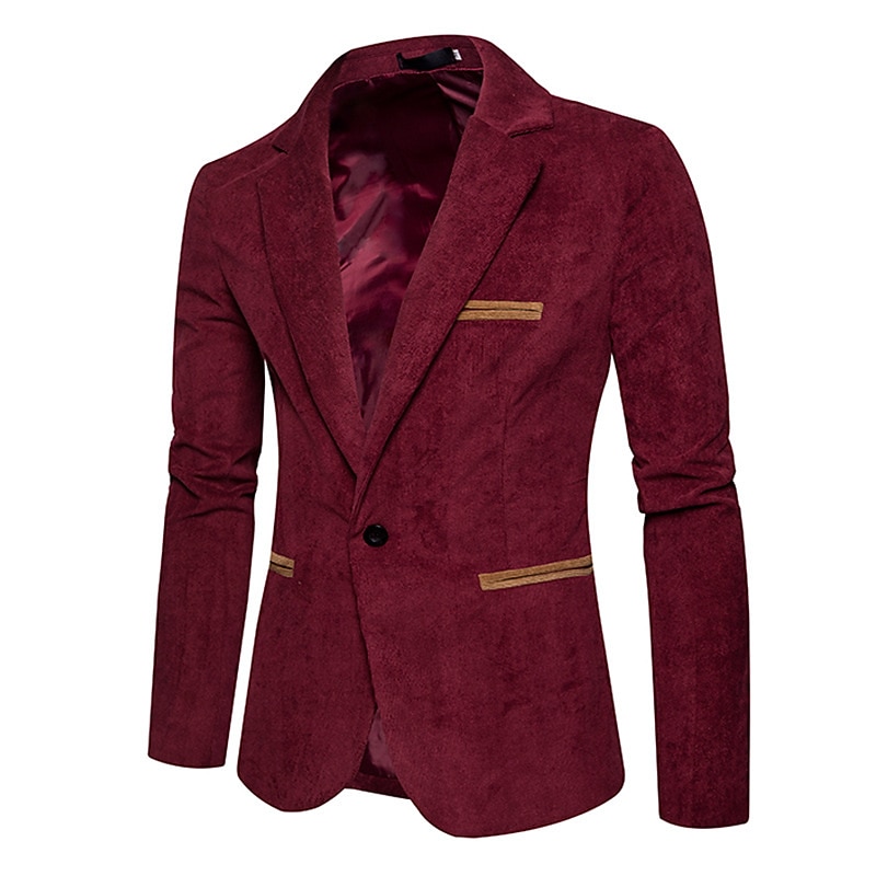 More information about Men's Corduroy Jacket Blazer Business Vacation Durable Casual / Daily Pocket Winter Spring & Fall Solid / Plain Color Warm Ups Comfort Straight Collar Regular Burgundy Dark Navy khaki Jacket