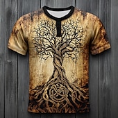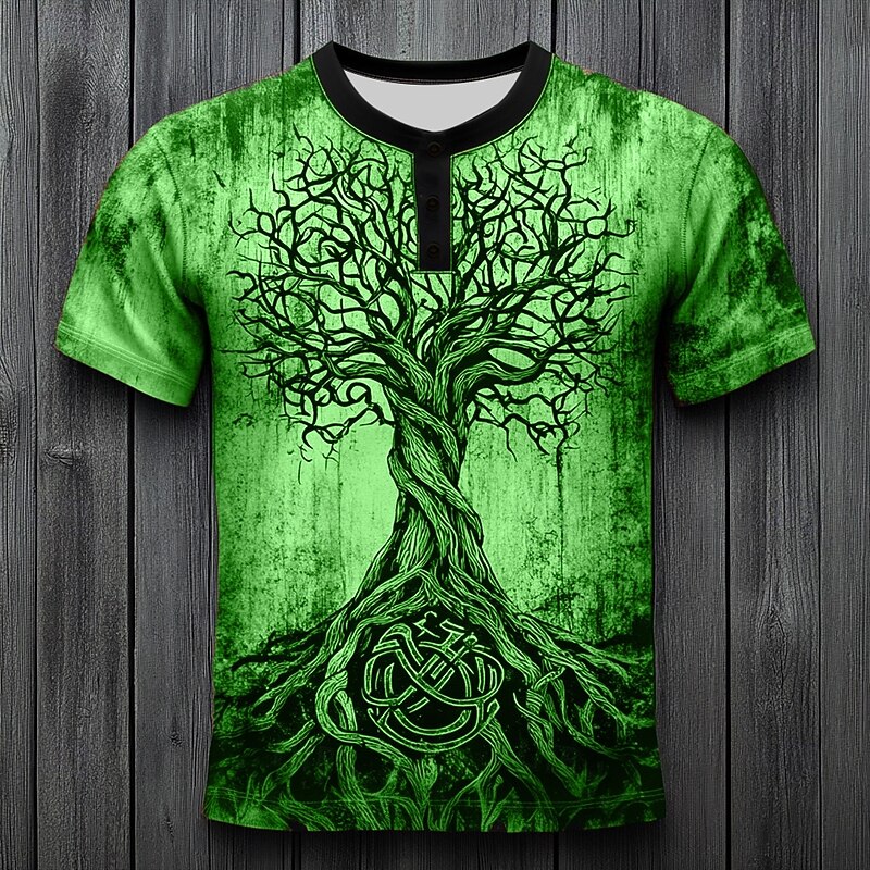 More information about Men's Tree Pattern T Shirt Henley Shirt Short Sleeve Vintage Designer Retro Vintage Street Casual Daily Summer Spring All Seasons Blue Dark Green Purple Orange khaki Henley Henley T-Shirt