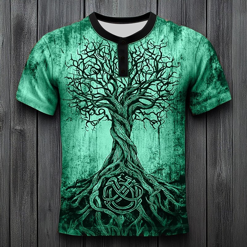 Men's Tree Pattern T Shirt Henley Shirt Short Sleeve Vintage Designer Retro Vintage Street Casual Daily Summer Spring All Seasons Blue Dark Green Purple Orange khaki Henley Henley T-Shirt 11
