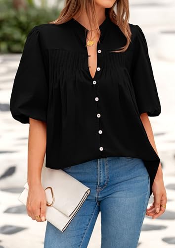 • TRENDY DESIGN:Womens Summer Tops;Womens Button Down Blouse;V Neck Tops for Women;Short Sleeve Shirts for Women;Pleated Blouse for Women;Lantern Sleeve Shirts for Women;Going Out Tops for Women;Loose Fit Pullover Blouse for Women