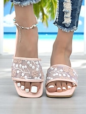 More information about Women's White Embroidered Mesh Slide Sandals – Floral Lace Design, Square Toe, Romantic Beach Style for Summer Vacations and Casual Wear