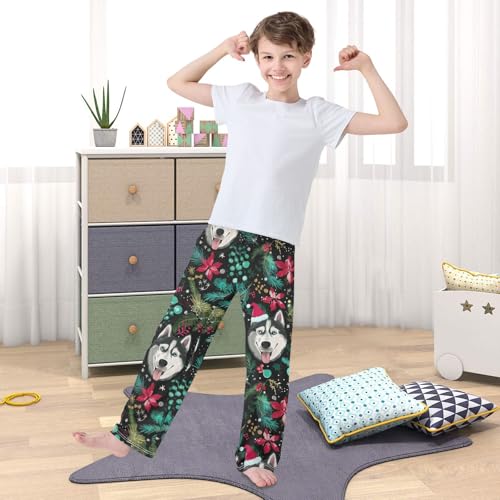 Husky Mistletoe Branches Boys Long Pants Soft Trousers Elastic Waist Kids Lounge Bottoms with Pockets S-XL 6