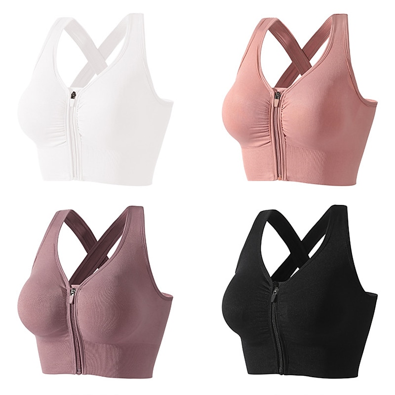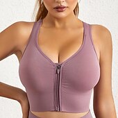 More information about Women's Sports Bra Medium Support Open Back Zipper Solid Color Yoga Fitness Gym Workout Bra Top Sport Activewear Breathable Quick Dry Comfortable Stretchy Slim / Removable Pad / Wireless Home Outfits