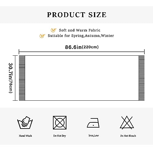 • 【Dimension】86.6in*30.7 inch;This scarf is large, soft, warm, feels like cashmere. Whether you wrap it like a scarf or drape it like a shawl. Drapes nicely and stays wrinkle free.