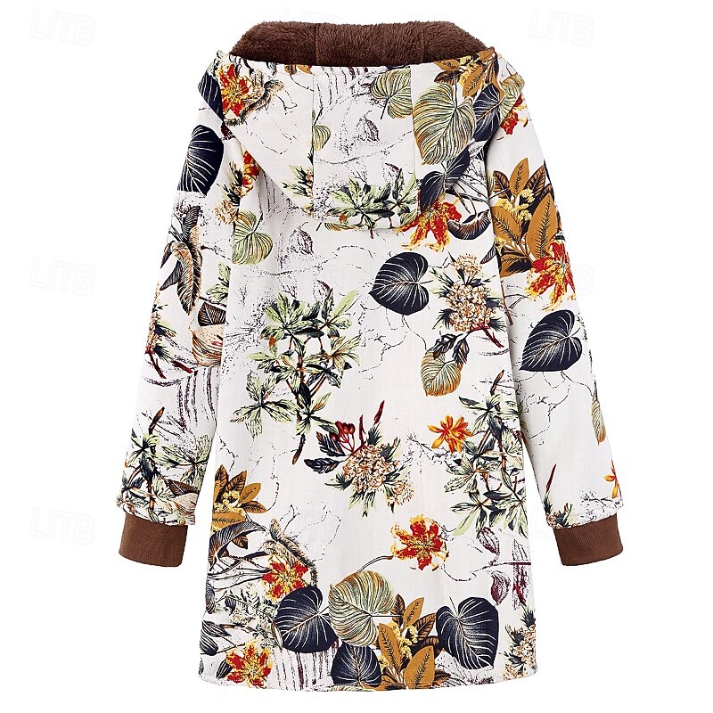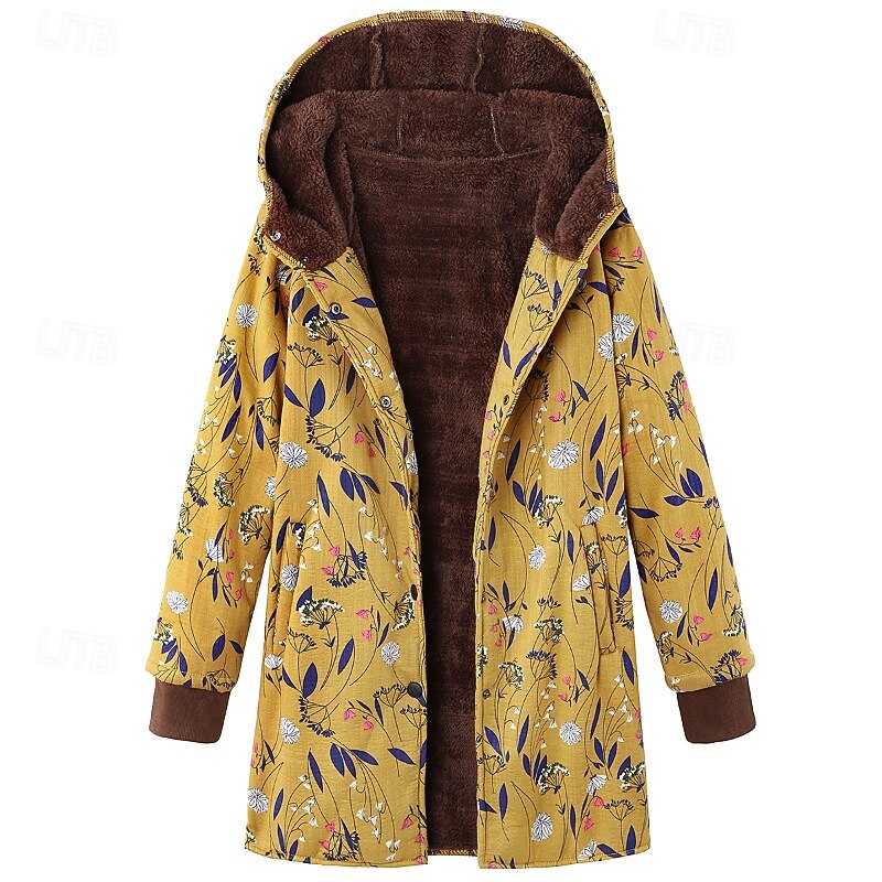 More information about Women's Winter Coat Coat Hoodie Jacket Warm Comfortable Pocket Buttons Casual Floral Vacation Going out Weekend Regular Hoodie Regular Fit Long Sleeve Outerwear White Yellow Red Fall Winter