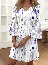 Women's Mini Dress Casual Dress Semi Formal Dress Petite Dress Sundress Streetwear Ruffle Sleeve Vacation Street Date Regular Fit Floral 3/4 Length Sleeve V Neck Pink Blue Purple Summer