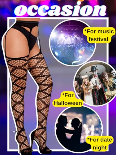 Kaei&Shi Garter Belt and Thigh Highs,Sexy Fishnet Stockings for Women Lingerie,Suspender Pantyhose Rave Party Club Night 1