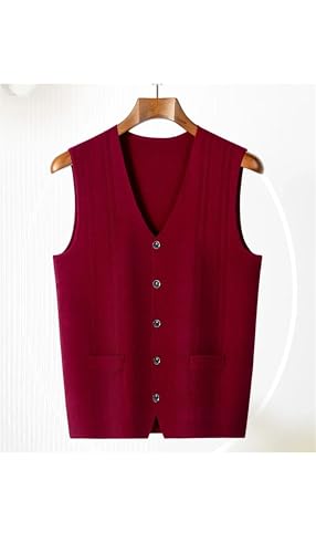 Men's Office Classic Sleeveless Knitted Cardigan Casual V-Neck Single Breasted Solid Wool Suit Vest 5