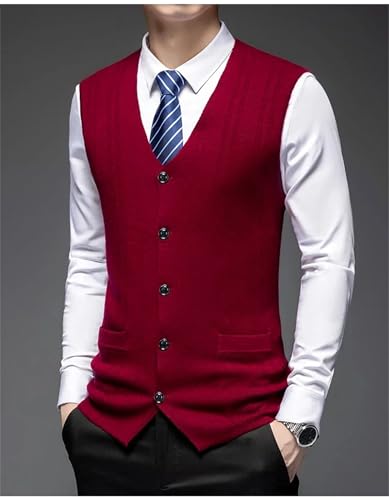 Men's Office Classic Sleeveless Knitted Cardigan Casual V-Neck Single Breasted Solid Wool Suit Vest 4