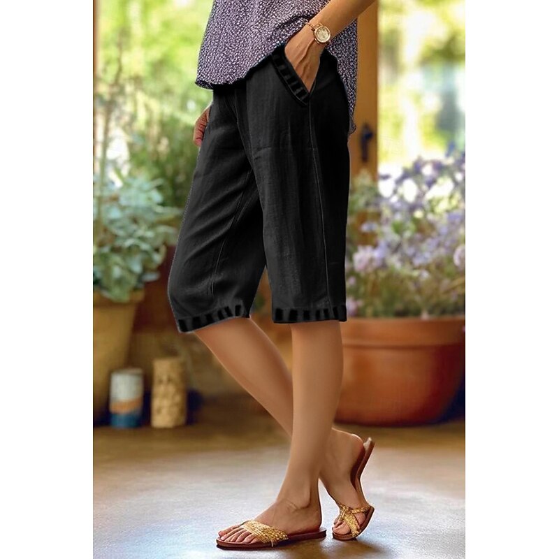 HOT ! Women's Cotton Linen Pants Slacks Fashion Streetwear Knee Length Natural Plain Pocket Comfy Outdoor Street Daily Going out Light Sky Blue Black White Khaki Summer Regular Fit