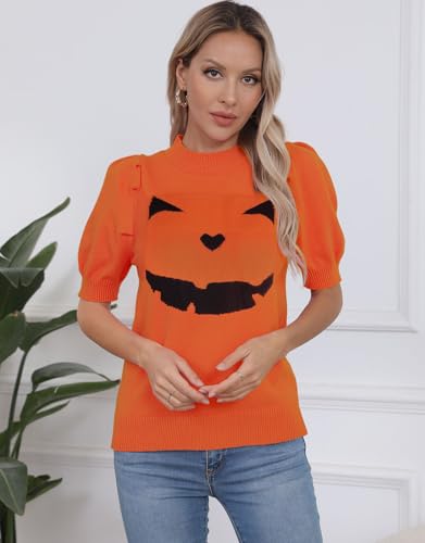• UNIQUE CHARM: Crew neck and puff sleeve are designed to flatter your body. Unique face patterns will make people feel more cute and personalized. The summer sweater tops is not too thick or thin, just the right weight for all seasons.