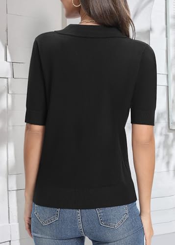 Urban CoCo Women's Short Sleeve V-Neck Collared Sweater 2025 Spring Summer Ribbed Knit Tops for Business Casual 5
