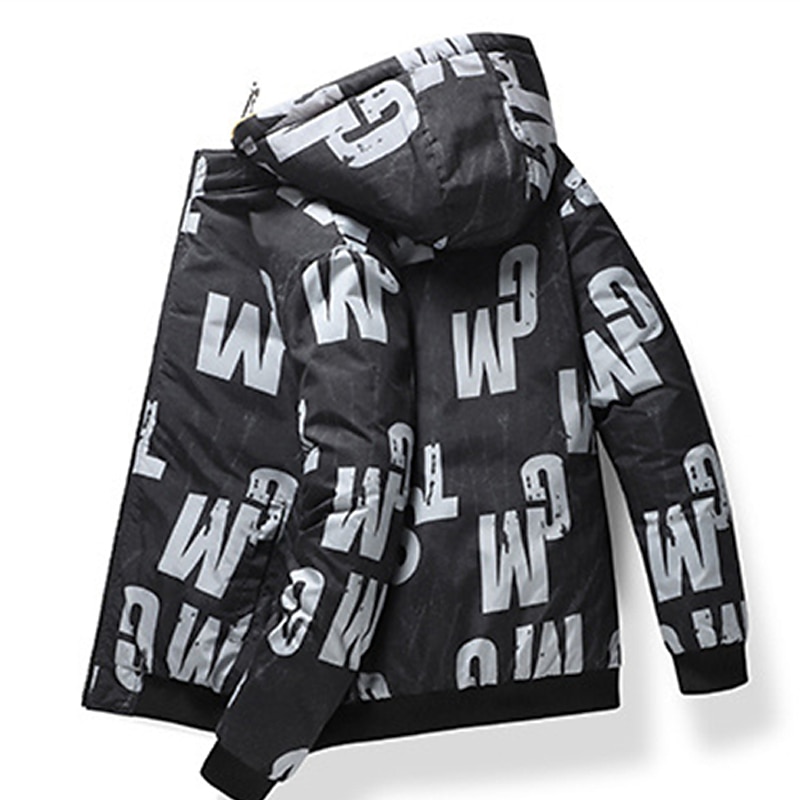 More information about Men's Puffer Jacket Hoodie Coat Padded Zipper Pocket Print Sports Outdoor Regular Outdoor Casual / Daily Winter Letter Black Yellow Red Khaki Puffer Jacket