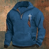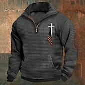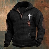 More information about Men's Sweatshirt Waffle Sweatshirt Quarter Zip Sweatshirt Black Army Green Blue Dark Gray Half Zip Cross Print Sports & Outdoor Daily Holiday Polyester Streetwear Basic Casual Spring & Fall Clothing