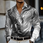 More information about Men's Marble Abstract Liquid Art Shirt Satin Shirt Dress Shirt Long Sleeve Fashion Casual Vacation Dailywear Summer Spring Fall Turndown 3D Print Button Up Shirts Blue green Red Blue Green Gray