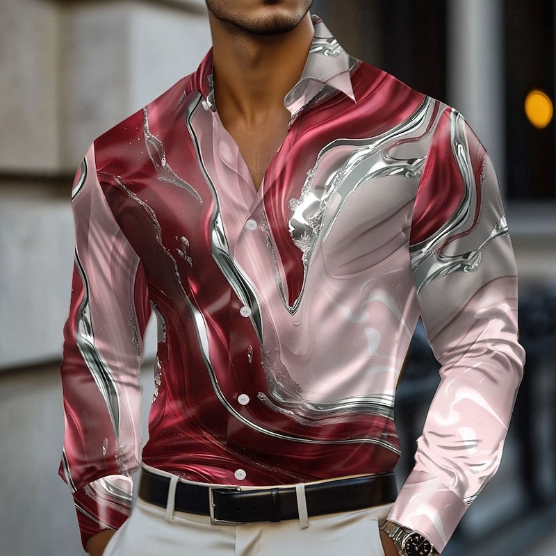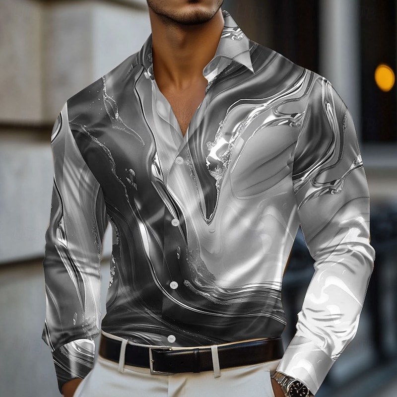 HOT ! Men's Marble Abstract Liquid Art Shirt Satin Shirt Dress Shirt Long Sleeve Fashion Casual Vacation Dailywear Summer Spring Fall Turndown 3D Print Button Up Shirts Blue green Red Blue Green Gray