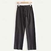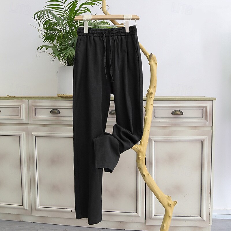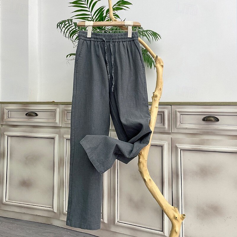 HOT ! Men's Linen Pants Trousers Summer Pants Beach Pants Pocket Drawstring Elastic Waist Plain Comfort Breathable Vacation Daily Holiday Hawaiian Boho Black White Micro-elastic