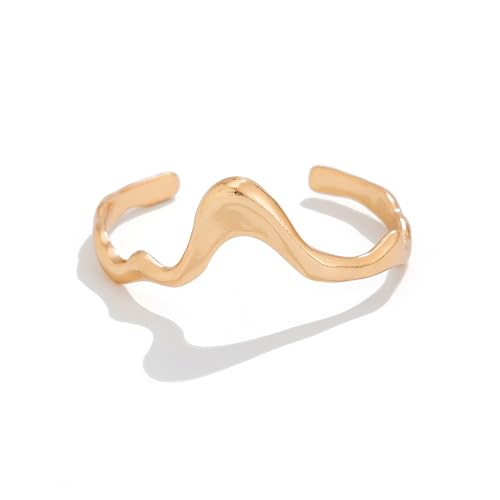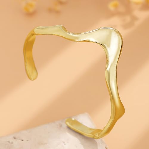 GIGB PBDK 14K Gold Liquid Metal Bracelet, Chunky Curved Wave Lava Open Cuff Bracelet, Minimalist Punk Hip Hop Statement Bangle Jewelry Gifts for Women 7