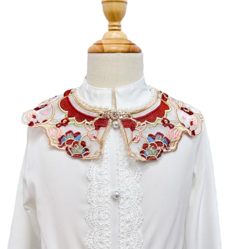 More information about Kids Girls Chinese Vintage Embroidered Flower Shawl Wrap Scarf Pearl Beaded Neckline Dresses Decorative False Collar