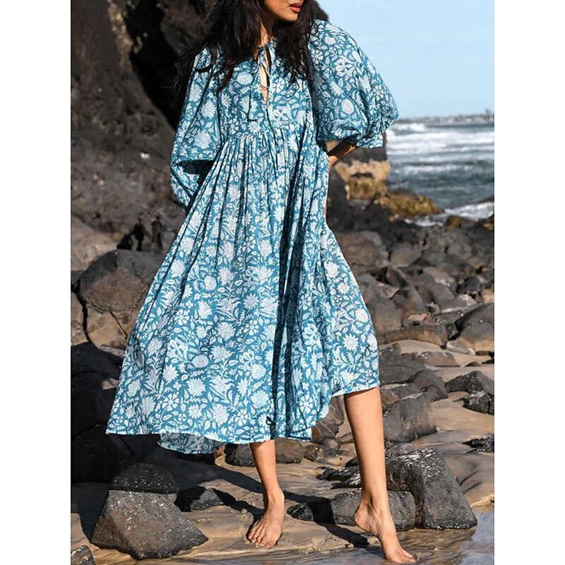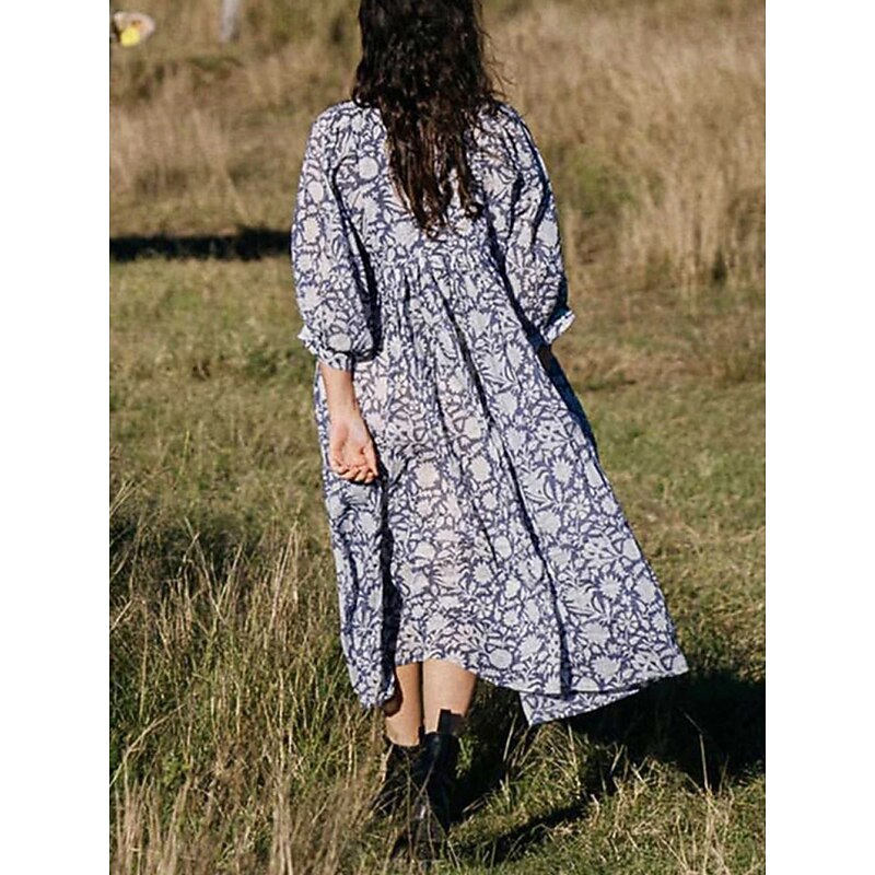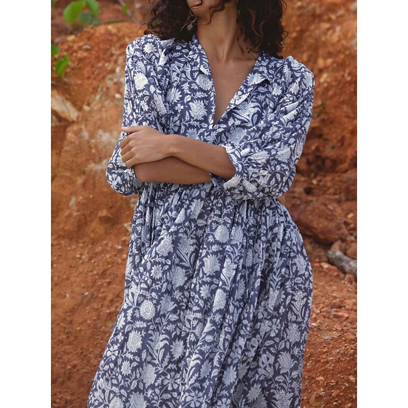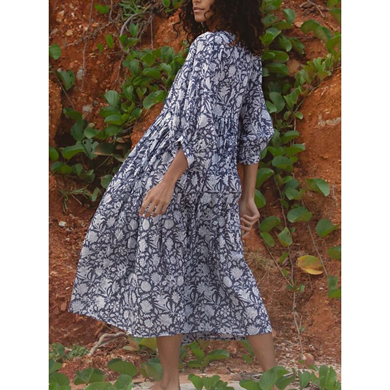 More information about Women's Midi Dress Casual Dress Stylish Casual Vacation Daily Regular Fit Floral 3/4 Length Sleeve Crew Neck Navy Blue Blue Spring Fall