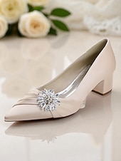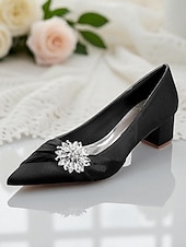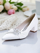 More information about Women's White Low Block Heel Pumps with Crystal Embellishment - Elegant Formal Wedding and Cocktail Party Shoes