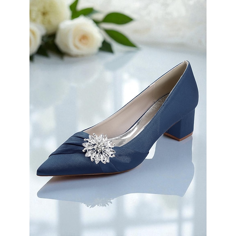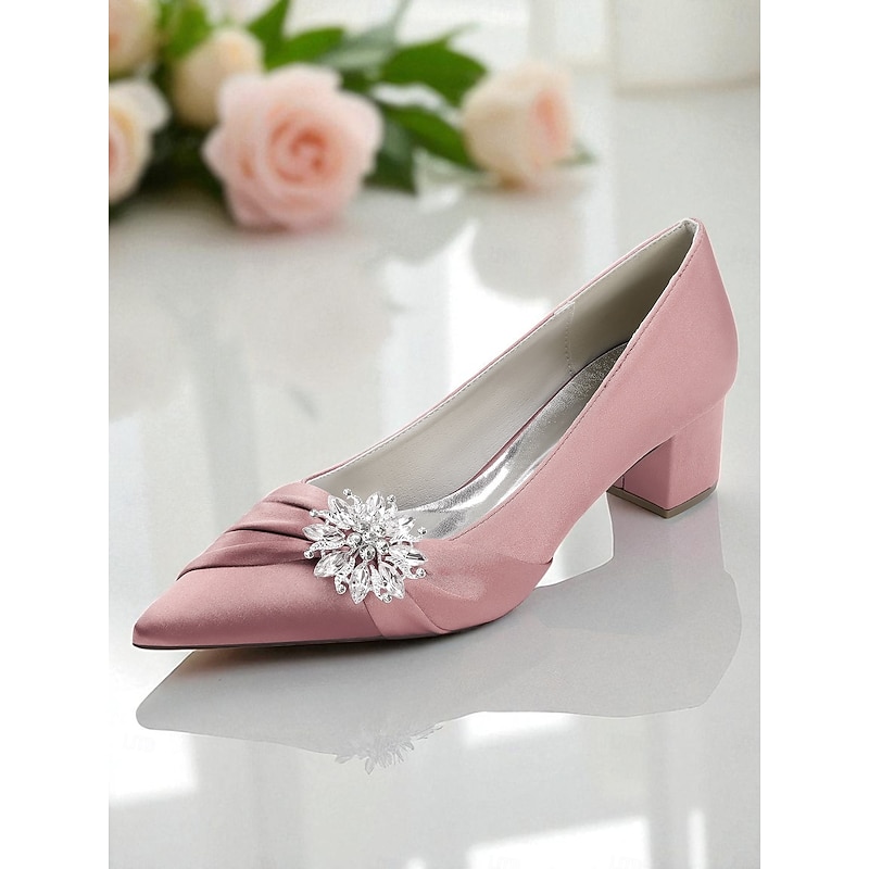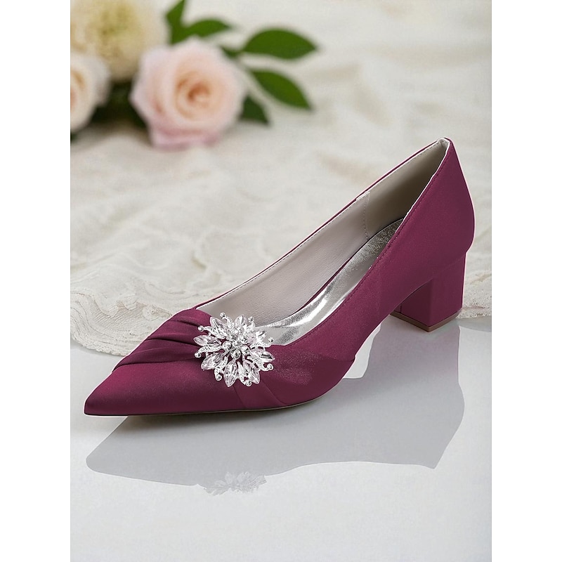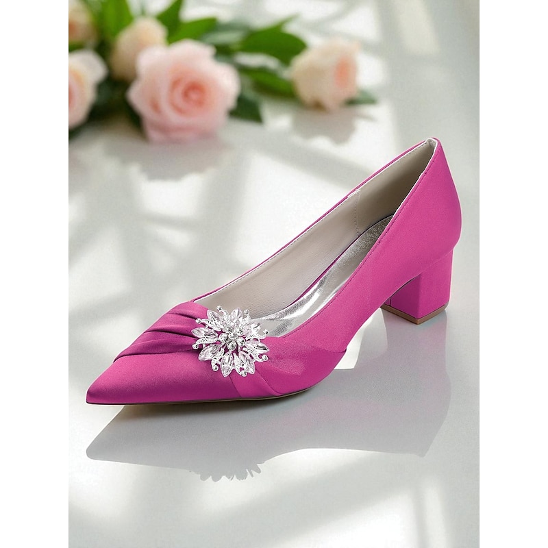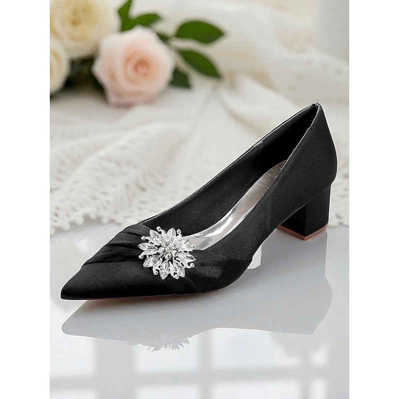 Highlights - Luxurious satin upper material - Sleek synthetic leather lining - Comfortable chunky heel design - Elegant pointed toe shape - Durable rubber outsole for long-lasting wear