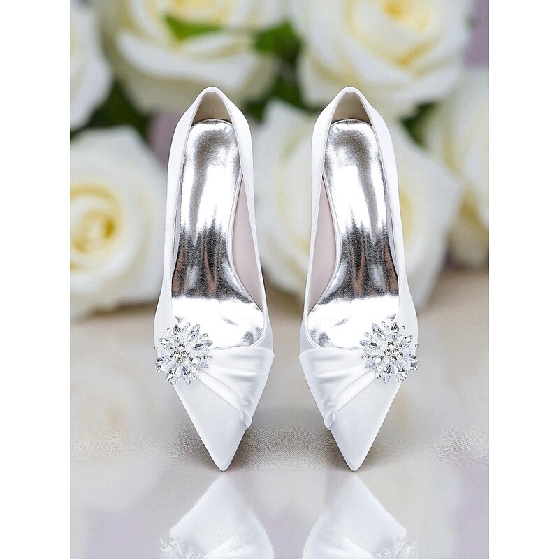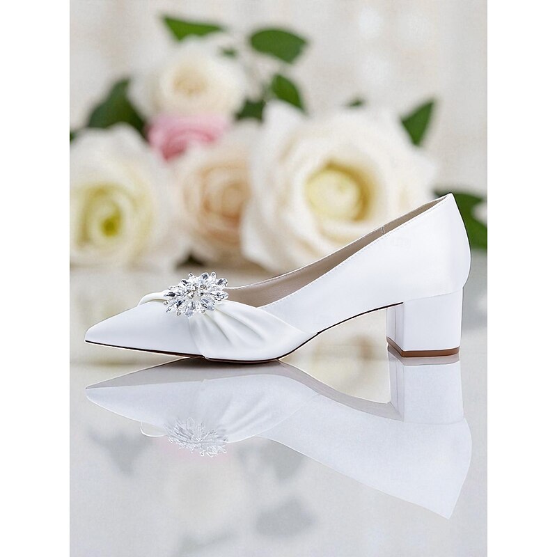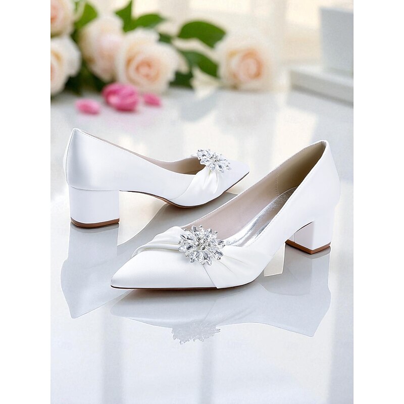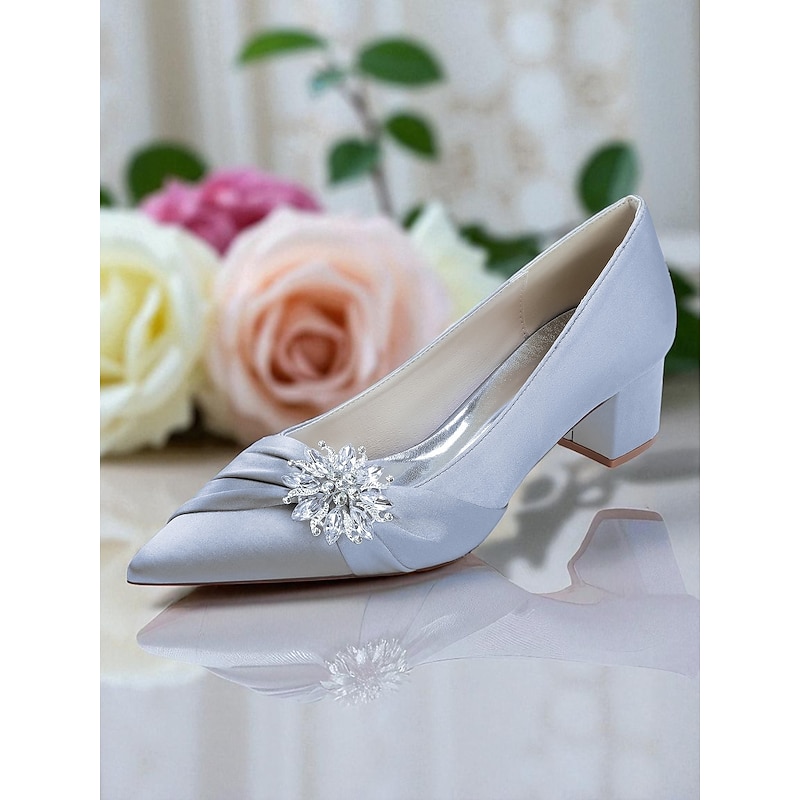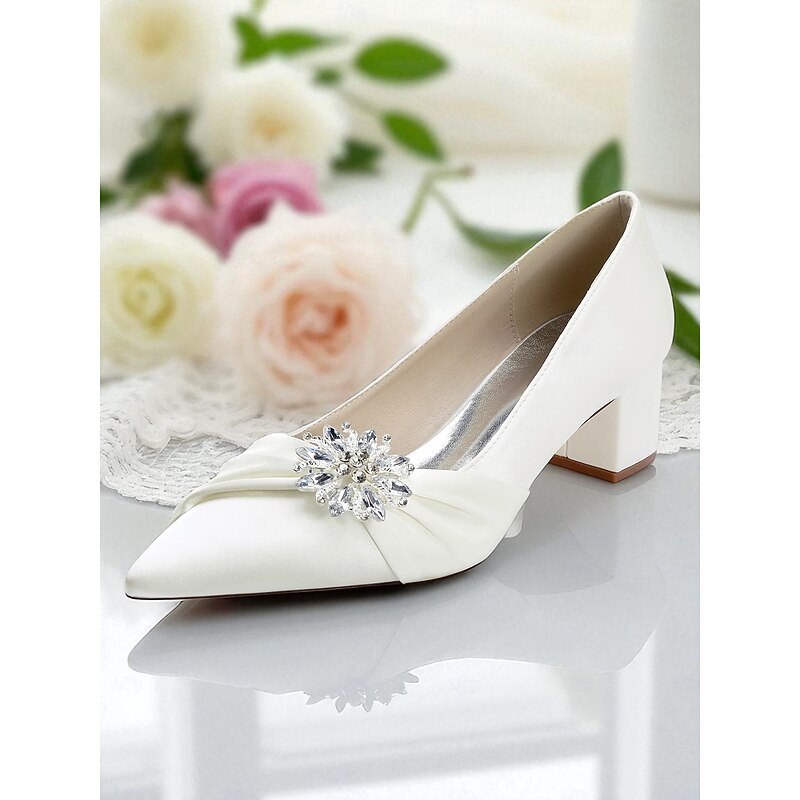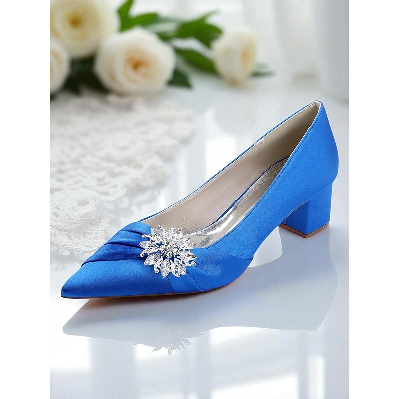Highlights - Luxurious satin upper material - Sleek synthetic leather lining - Comfortable chunky heel design - Elegant pointed toe shape - Durable rubber outsole for long-lasting wear