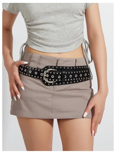 Verdusa Women's Studded Belts Y2k Belt Punk PU Leather Vintage Western Cowgirl Belts 2