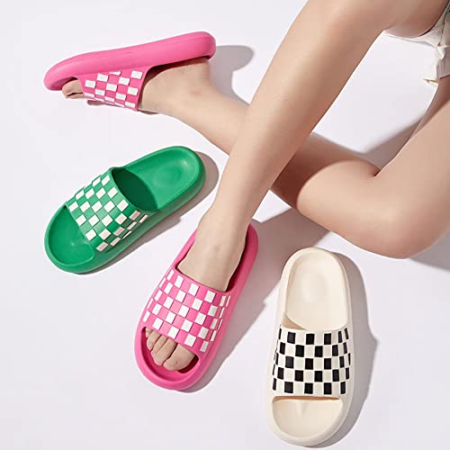 Molodo Unisex Open Toe Non-Slip Fashion Checkerboard Slides - Beach & Bathroom Slippers, Indoor & Outdoor (Black) 1