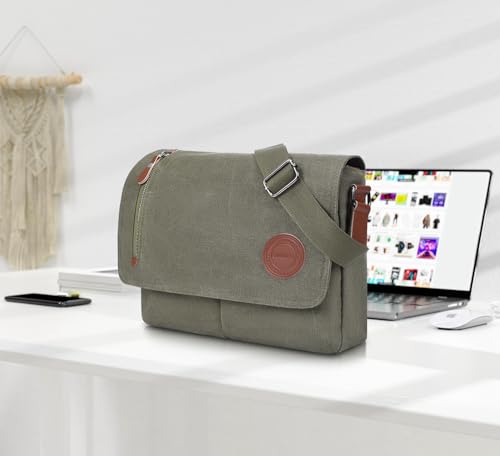 HOT ! Vintage Canvas Satchel Messenger Bag for Men Women, Crossbody Bag Travel Shoulder Bag 13.5" Laptop Bag Bookbag Work