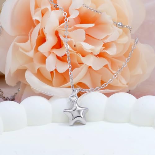 Star Layered Necklaces for Women - Sterling Silver Adjustable Star Pendant Necklace Stacked Bead Double Chain Charm Necklace Fashion Gifts for Christmas Birthday for Teen Girls Girlfriend Wife 5