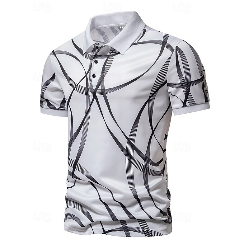 Men's Polo Button Up Polos Casual Sports Lapel Short Sleeve Fashion Basic Print Buttons Summer Spring Black White Polo 6