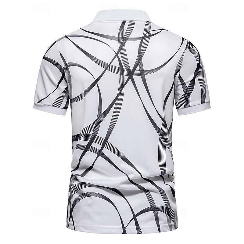 Men's Polo Button Up Polos Casual Sports Lapel Short Sleeve Fashion Basic Print Buttons Summer Spring Black White Polo 4