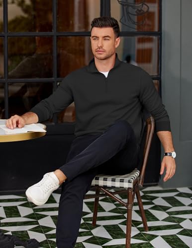 HOT ! COOFANDY Men's Quarter Zip Pullover Mock Neck Lightweight Sweatshirt Long Sleeve Polo Shirt Business Casual Pullover Top