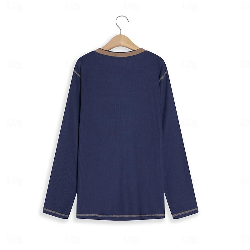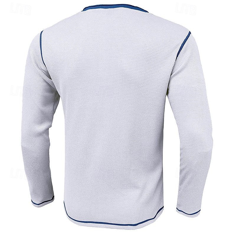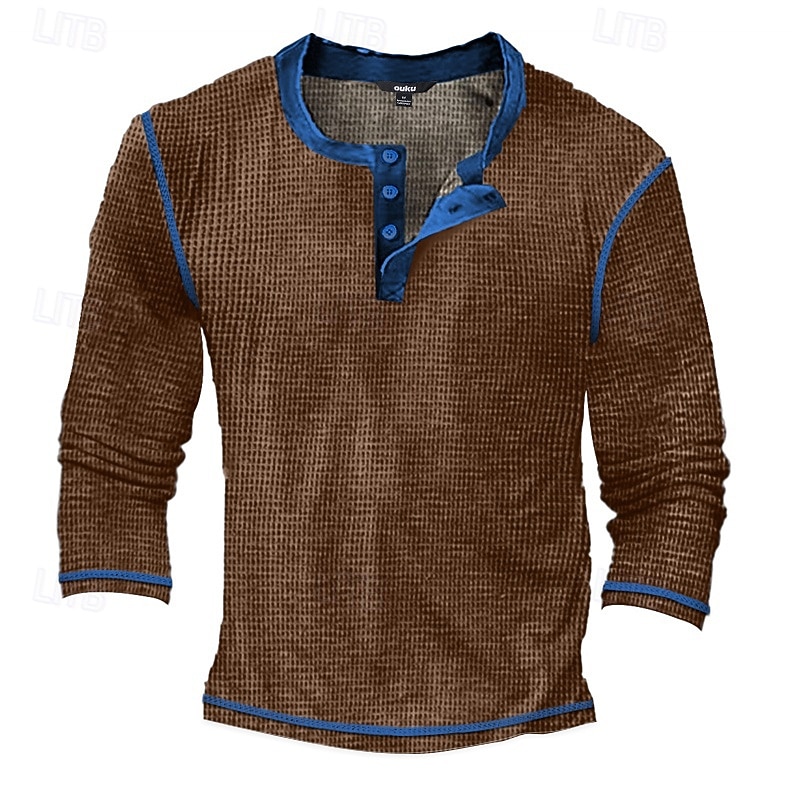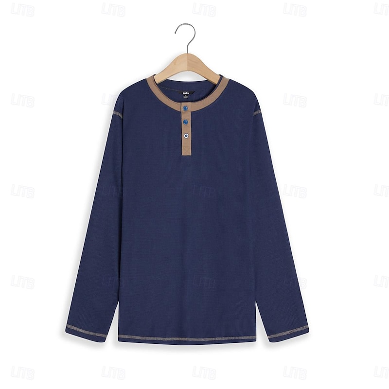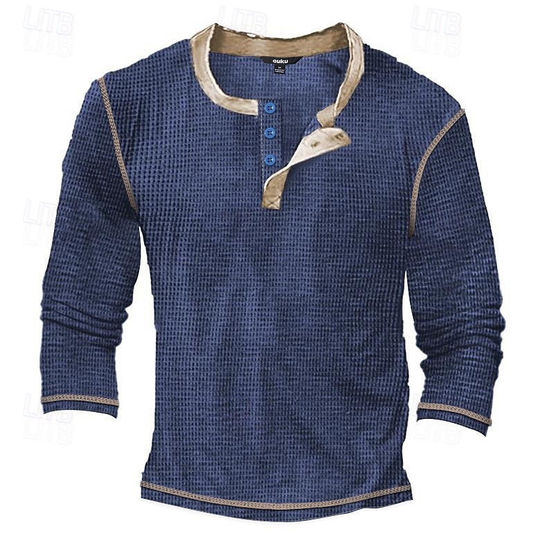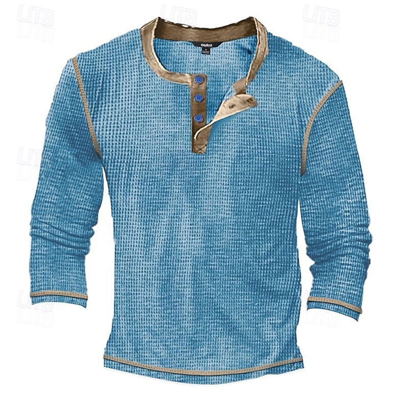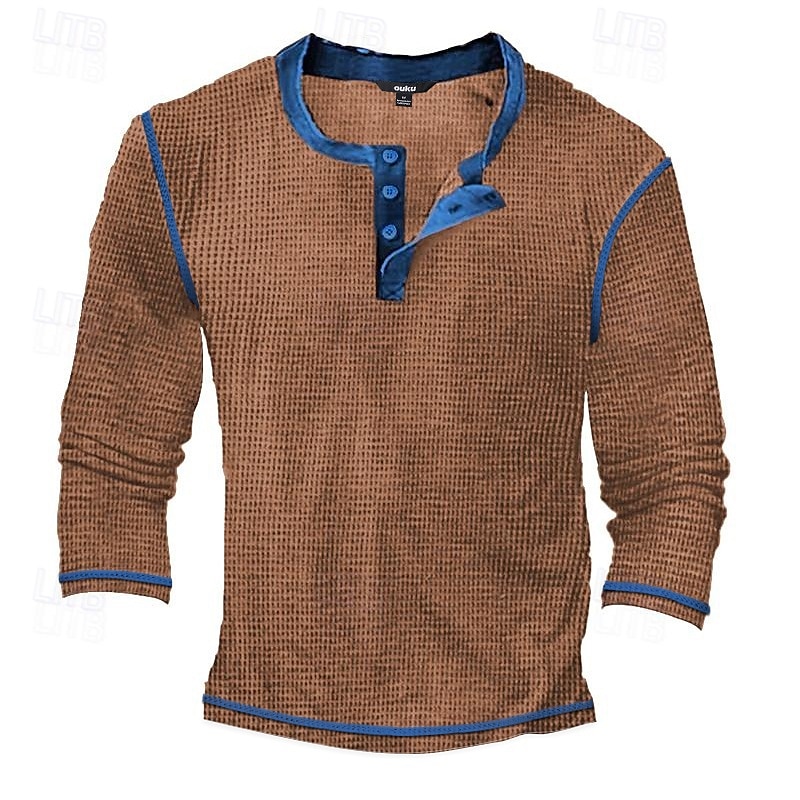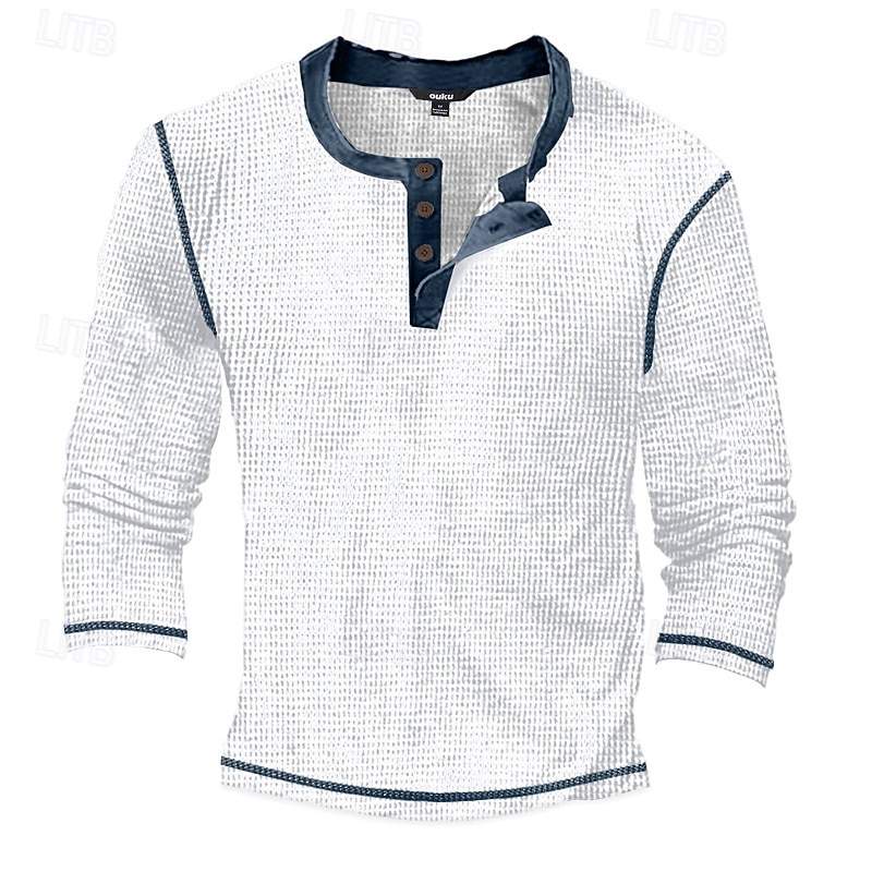 Why Choose Men's T Shirt Henley Shirt Waffle Knit Tee Tee Top Long Sleeve Shirt Long Sleeve Color Block Fashion Designer Basic Patchwork Henley Vacation Street Going out Spring & Fall Black White Blue Henley?