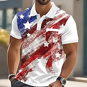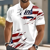 Independence Day Male American Flag Polo Short Sleeve Turndown Casual Daily Casual Festival Buttons Pocket Summer Robin's Egg Blue White 1