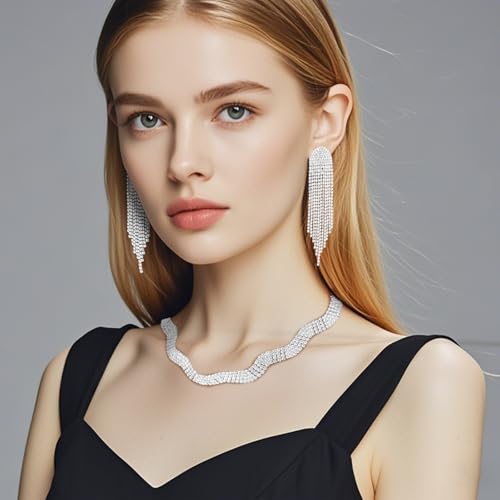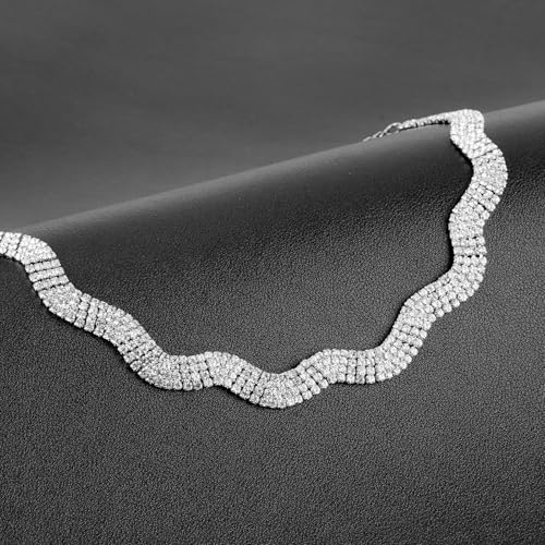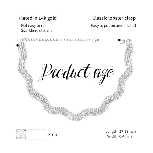 • ELEGANT AND STYLISH: sparkly wave-shaped rhinestone choker necklace looks simple but fashionable, adding a touch of glamour to your everyday wear. The choker style sits well around the neck and complements many outfits.