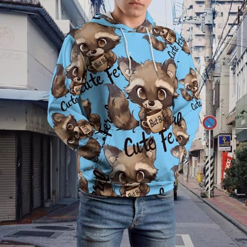 Raccoon Cute But Feral Loves Coffee Adult Pullover Hoodies Long Sleeve Sweatshirt Casual Tops with Pockets for Women Men 7